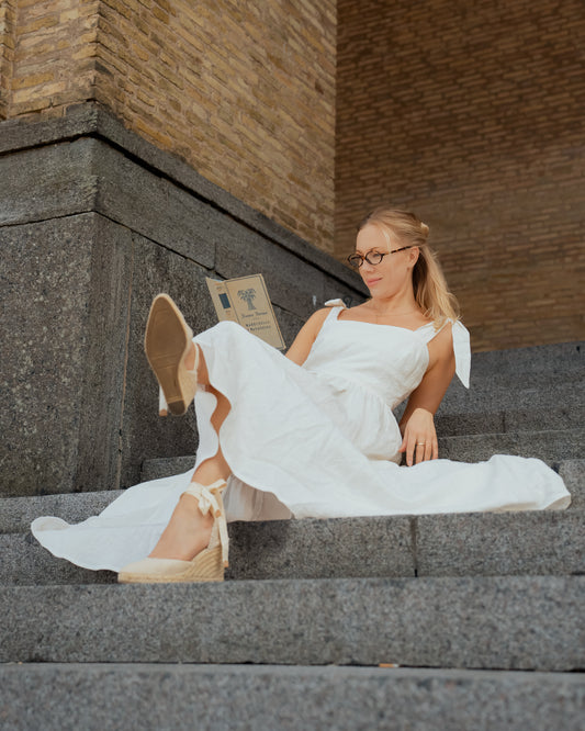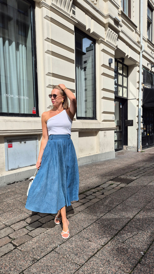 Explore our collection of timeless dresses and skirts, handmade in Sweden from discarded vintage fabrics like old tablecloths and curtains. Each piece is made to order, allowing for small customizations and ensuring a unique, sustainable wardrobe addition.