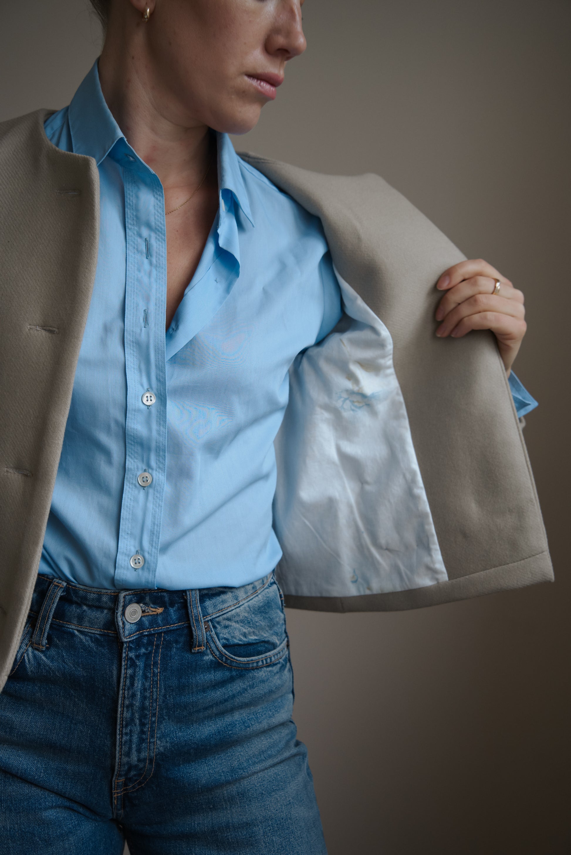 Jacket re:loved from a wool blanket, one of a kind. Vintage pure brass buttons. This one is fully lined with 100 cotton.